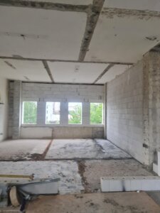 Na začiatku roka 2023 sme zahájili ambiciózny projekt komplexnej rekonštrukcie budovy v obci Dubice, ktorý má za cieľ premenu priestoru na moderné bytové jednotky. Aktuálne sme úspešne dokončili prípravy na rozvody vody a kanalizácie.
